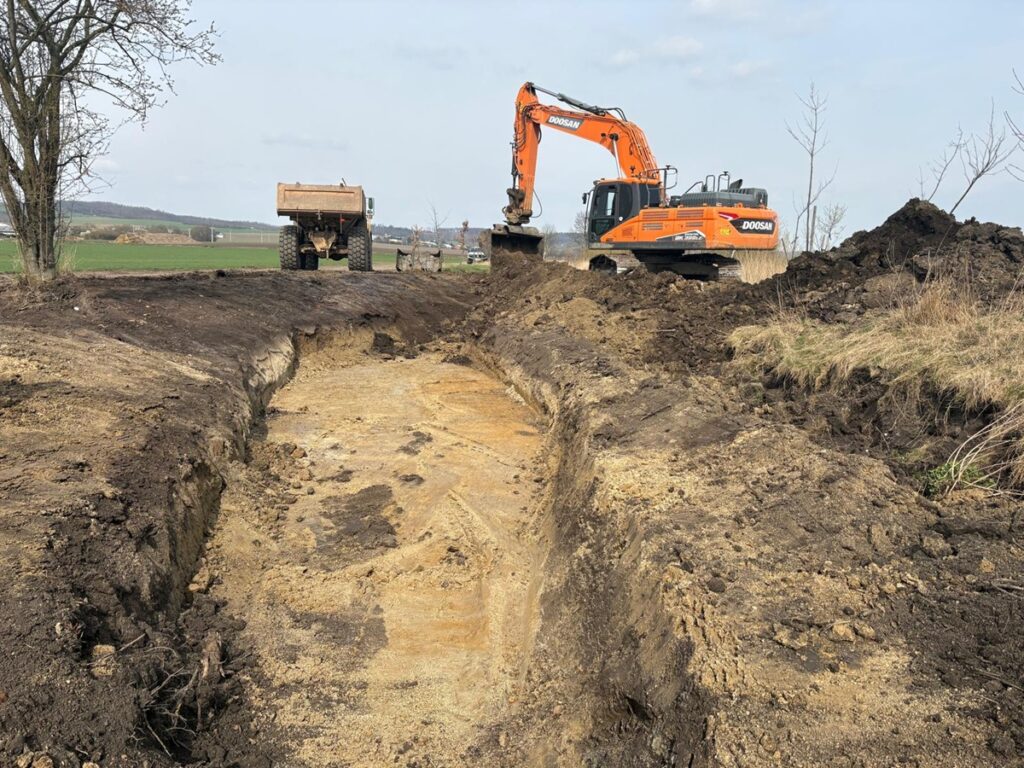 Nabízíme práce stavební mechanizace jako jsou skrývka zeminy, hloubení a příprava základů staveb pomocí bagru a válce, hloubení inženýrských sítí a terénní práce včetně úprav.